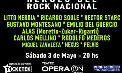 Este sábado 3 de mayo se realizará el festival “Héroes del Rock Nacional”. Será a partir de las 20, en el Teatro Opera de avenida Corrientes...