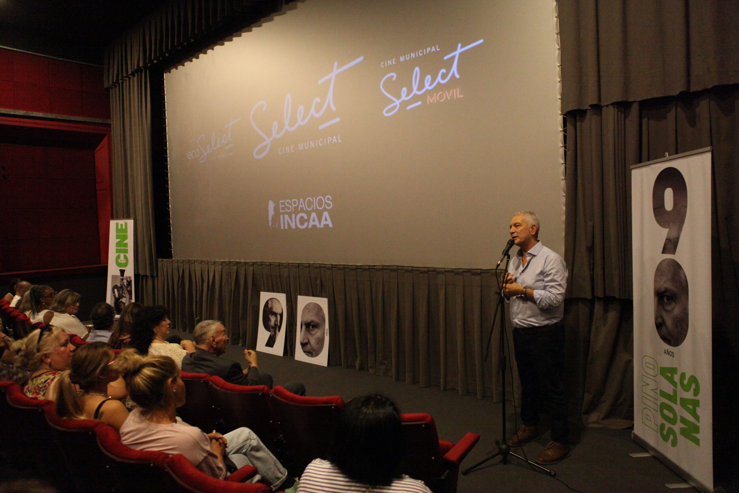 La ceremonia tuvo lugar en la histórica sala del Cine Select que, tras ser puesta en valor, pasó a llamarse “Fernando Ezequiel ‘Pino’ Solanas”. La presentación incluyó una exposición de objetos y material artístico, la proyección de un video sobre su vida y obra y la puesta en escena de su último documental póstumo, “Tres en la deriva del acto creativo”.