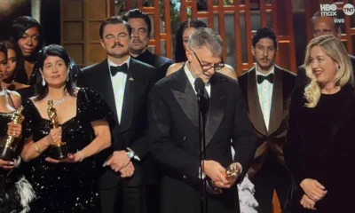 Tras el anuncio, todo el elenco y el equipo de producción subieron al escenario para recibir el el Oscar y celebrar el reconocimiento a una de las producciones más comentadas del año.