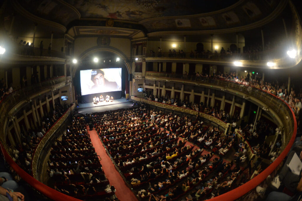 En simultáneo, un numeroso grupo de admiradores se reunió frente al Coliseo Podestá para seguir la clase magistral desde una pantalla especialmente instalada por el Municipio. Allí, el público vivió la experiencia en un clima de alegría, emoción y fervor cinéfilo.