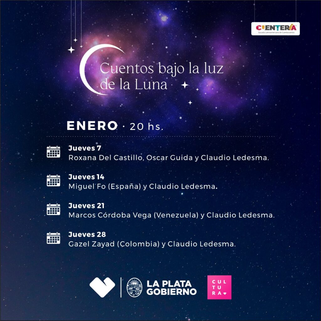 Todos los jueves de enero, febrero y marzo, la Municipalidad de La Plata, a través de la Secretaría de Cultura y Educación, vuelve a presentar el ciclo de “Cuentos bajo la luz de la luna”, que tanta aceptación del público ha tenido en sus anteriores ediciones.