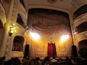 - Telón pintado por el escenógrafo Mateo Casella en Nápoles, con la misma tela usada para el Colón.