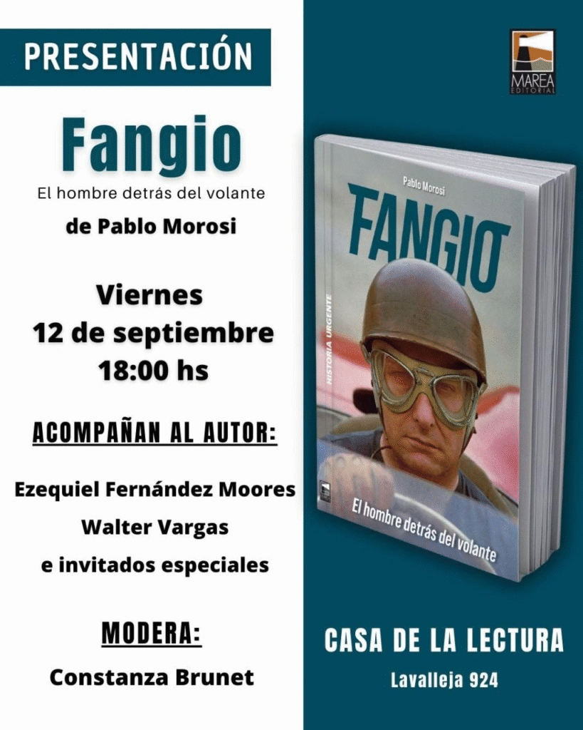 El viernes 12 de septiembre a las 18, en la Casa de la Lectura de la Ciudad Autónoma de Buenos Aires (calle Lavalleja al 924), el escritor y periodista Pablo Morosi presentará su último libro, “Fangio, el hombre detrás del volante”.