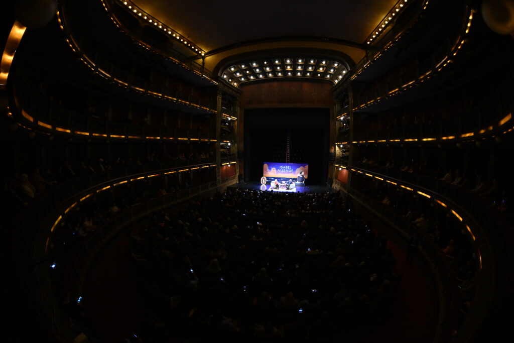 Los aplausos comenzaron antes de que Allende hiciera su entrada en el escenario del Teatro Cervantes, que estaba lleno desde el salón principal hasta los palcos, de mujeres y hombres deseosos de escucharla. “Sé que algunas personas hicieron cola en la lluvia por mucho rato. Gracias también por eso”, dijo la escritora chilena al sentarse.
