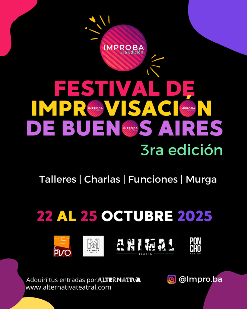 La tercera edición de IMPROBA se desarrollará durante cuatro días e incluirá talleres, charlas y funciones de improvisación teatral, con el mismo espíritu de comunidad, creatividad y apertura que nos impulsa desde el primer día.