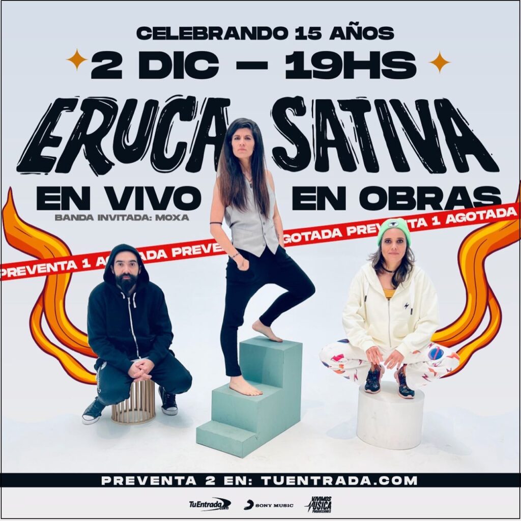 El power trío Eruca Sativa celebrará el próximo 2 de diciembre sus 15 años de historia con un show en el mítico estadio Obras Sanitarias, para luego continuar con los festejos en una gira nacional que tendrá su inicio en Santa Fe y Córdoba.