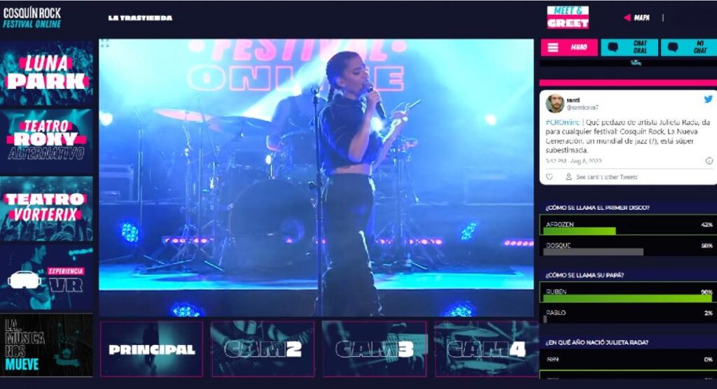 La plataforma también contenía atracciones como galerías de fotos, espacio gastronómico con posibilidad de pedir delivery y meet & greets de fans con artistas; algo que pasó desapercibido para quienes no utilizaron ninguno de estos servicios; a diferencia de lo que ocurre en el festival presencial, en el que los stands y los escenarios están a la vista de todos.
