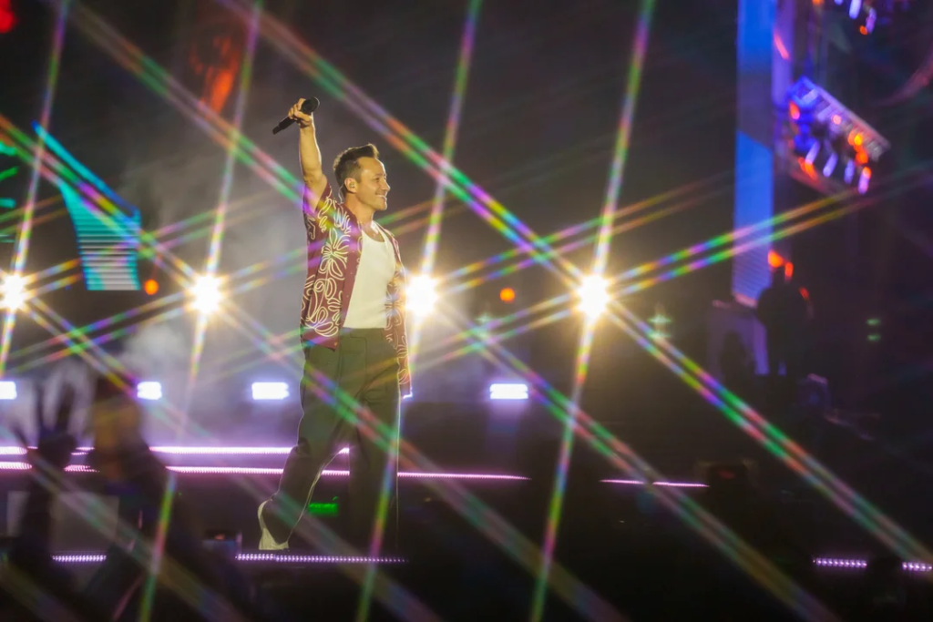 Luego fue el turno de Rombai, segundo artista de la noche, que desplegó toda su energía y convirtió el predio en una verdadera celebración colectiva, invitando a cantar y bailar al ritmo de todos sus éxitos.