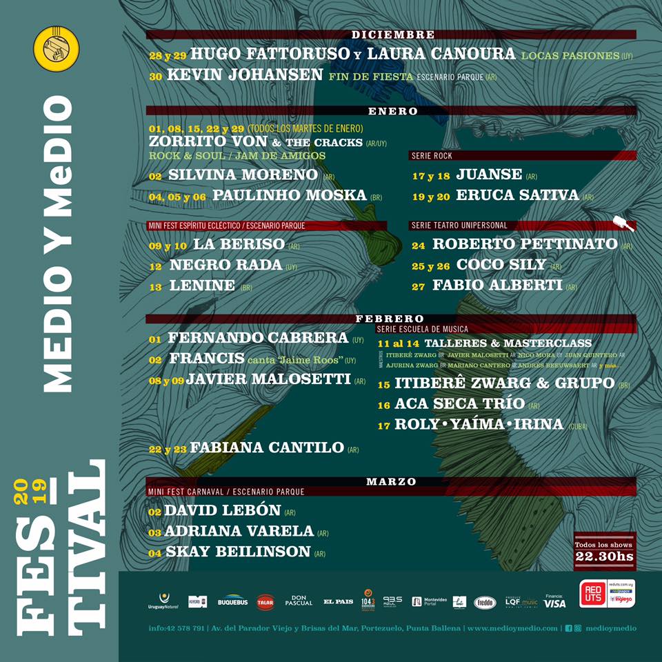 A lo largo del festival, que se extenderá hasta el 4 de marzo, podrá verse a Skay Beilinson, Lenine, Rubén Rada, David Lebón, Juanse, Eruca Sativa, Paulinho Moska, Javier Malosetti, el trío Aca Seca, La Beriso, Kevin Johansen, Fabiana Cantilo, Fernando Cabrera y Adriana Varela.