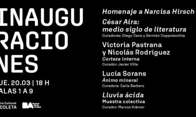 El próximo jueves 20 de marzo a las 18, el Centro Cultural Recoleta inaugurará cinco nuevas propuestas expositivas que se desplegarán desde la sala 1 hasta...