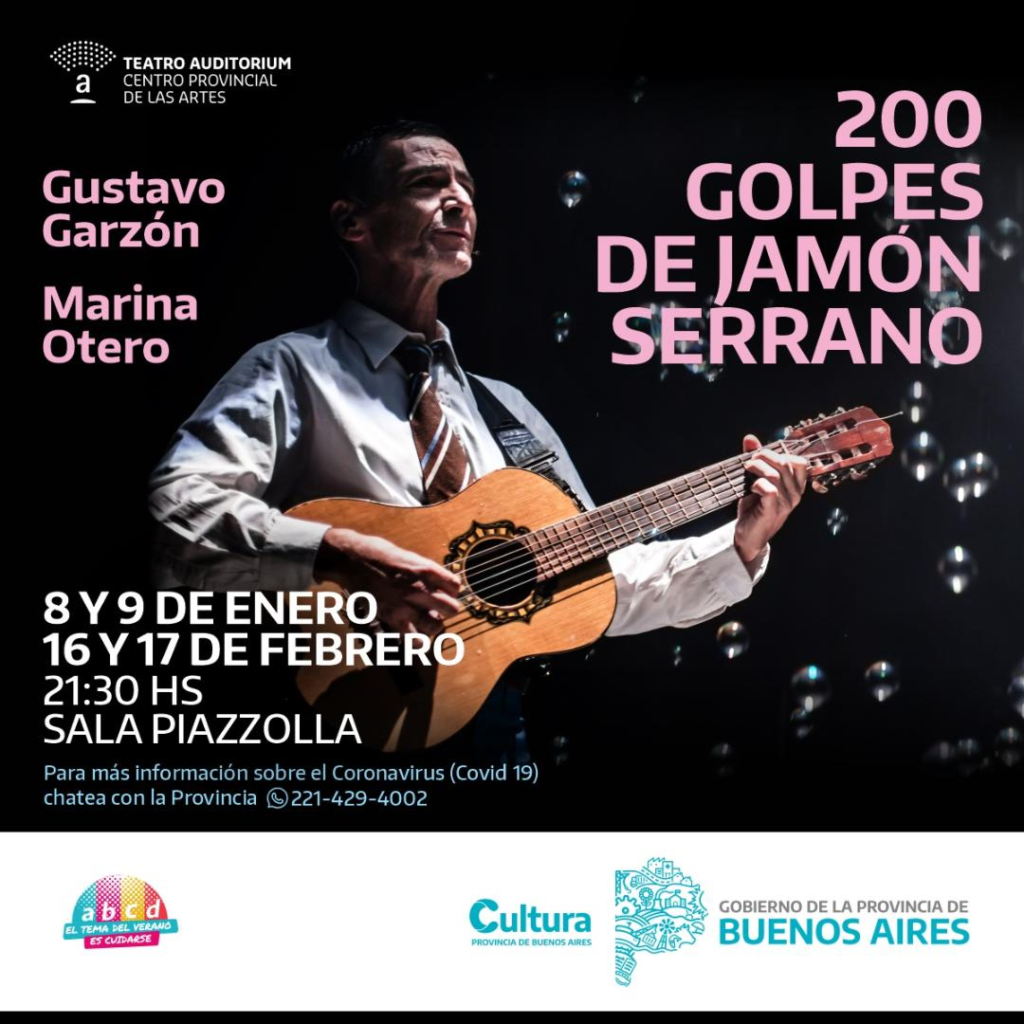 El Teatro Auditorium de Mar del Plata presenta a Gustavo Garzón, Marina Otero, Fede Barale y Lucia Giannoni en la obra “200 golpes de jamón serrano”. Las funciones están previstas para el viernes 8 y sábado 9 de enero, a las 21.30, en la Sala Astor Piazzolla.