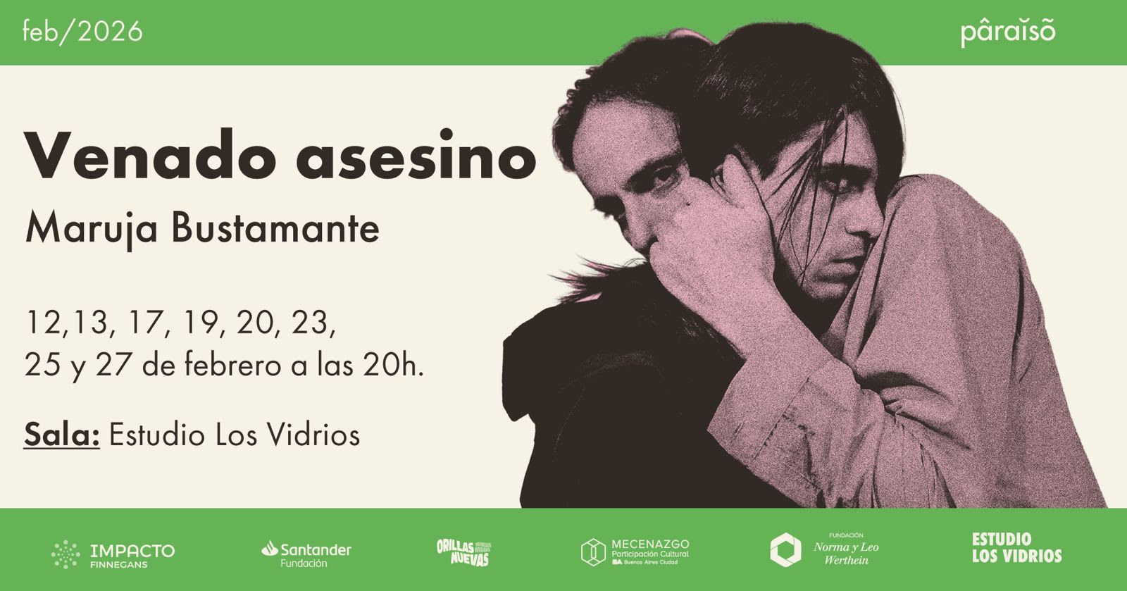 Las funciones están previstas para los días 12, 13, 17, 19, 20, 23, 25 y 27 de febrero, a las 20, en Estudio Los Vidrios (Av. Donado 2348, CABA), con localidades disponibles en https://paraisoclub.squarespace.com/membresias-paraiso-1.