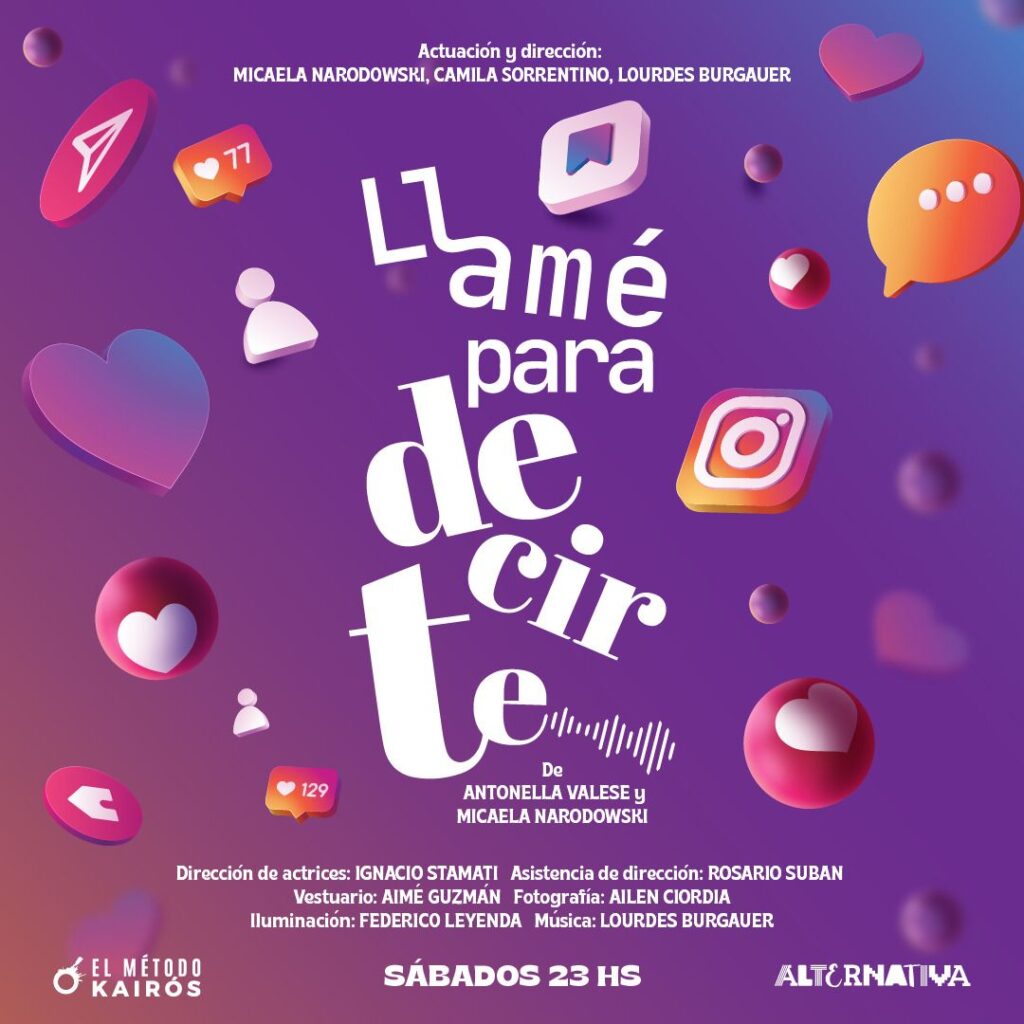 Hasta el 27 de julio continúa en cartelera “Llamé para decirte”, obra de Micaela Narodowski y Antonella Valese, con actuaciones de Lourdes Burgauer, Narodowski y Camila Sorrentino.