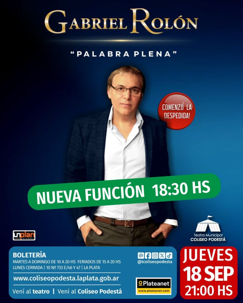 Jueves 18- 18:30 y 21:00 horas PALABRA PLENA, con Gabriel Rolón Evento-actividad/ APTA + 16 años