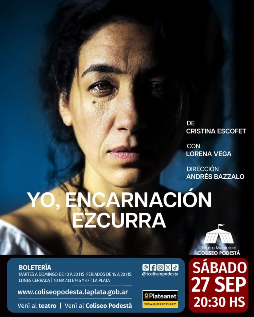 Sábado 27- 20:30 horas YO, ENCARNACIÓN EZCURRA, con Lorena Vega Drama/ ATPA + 16 años