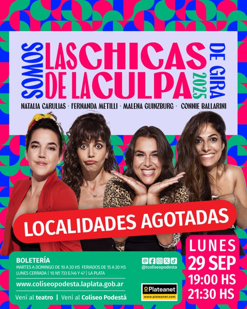 Lunes 29- 19:00 y 21:30 horas SOMOS LAS CHICAS DE LA CULPA, con Connie Ballarini, Malena Guinzburg, Natalia Carulias y Fernanda Metilli Stand up- humorístico/ APTA + 16 años