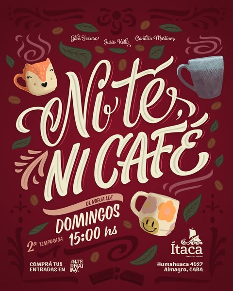 La obra “Ni té, ni café”, con dramaturgia y dirección de Noelia Lee, comienza el domingo 5 de abril a las 15 su segunda temporada, en el Ítaca Complejo Teatral de calle Huamahuaca al 4027 de CABA.