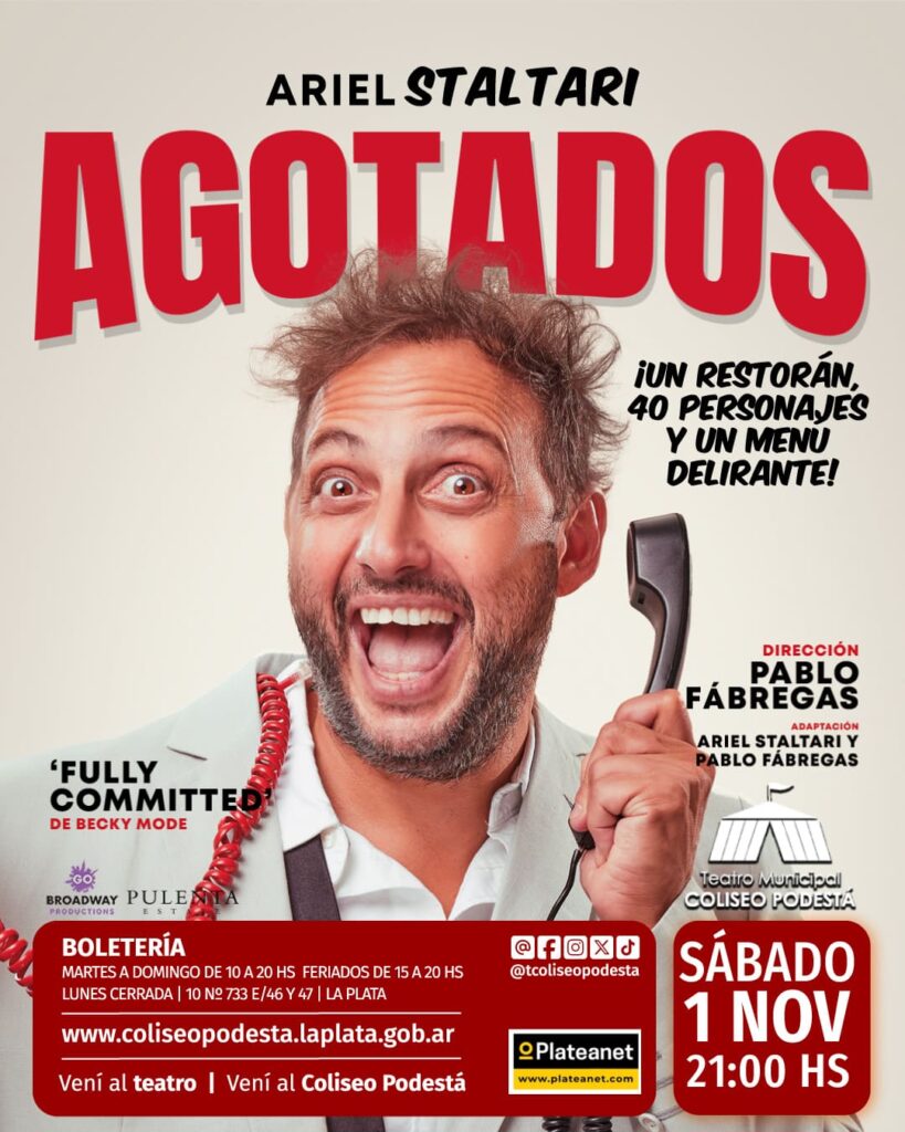 Bajo la dirección de Pablo Fábregas, esta hilarante puesta en escena desafía a un solo actor Ariel Staltari a interpretar a más de 40 personajes en un despliegue de talento y creatividad sin límites. Basada en la obra Fully Committed de Becky Mode y Mark Setlock, éxito en Broadway con Jesse Tyler Ferguson (Modern Family), esta adaptación incorpora guiños a la cultura argentina, desde personalidades de la farándula hasta figuras del ámbito político y mediático.