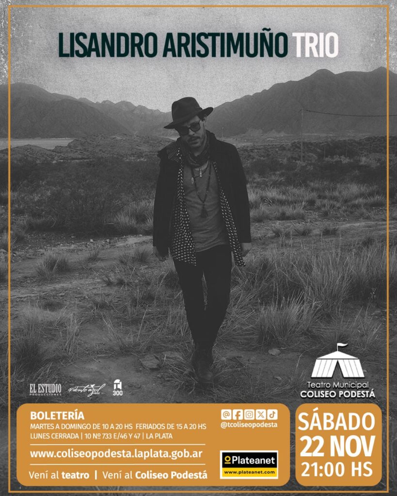 Con la solvencia de un verdadero clásico que se caracteriza por sorprender siempre y transformarse en vivo, Lisandro Aristimuño es la novedad permanente. Autor de una de las propuestas artísticas más creativas, renovadoras y elogiadas desde las cuales construyó una identidad sonora propia e independiente. El destacado artista se presentará con una especial formación de trío junto a Lucas Argomedo en bajo y Martín Casado en batería, llevando sus canciones a una nueva sonoridad en la búsqueda de la experimentación sonora y la imaginación.Compositor, productor y multifacético instrumentista, Aristimuño es creador de una obra consagratoria con la que ya ha conseguido 9 Premios Gardel, la nominación a los Grammy Latinos y la distinción del Premio Konex como una de las 5 figuras más destacadas de la música popular argentina.