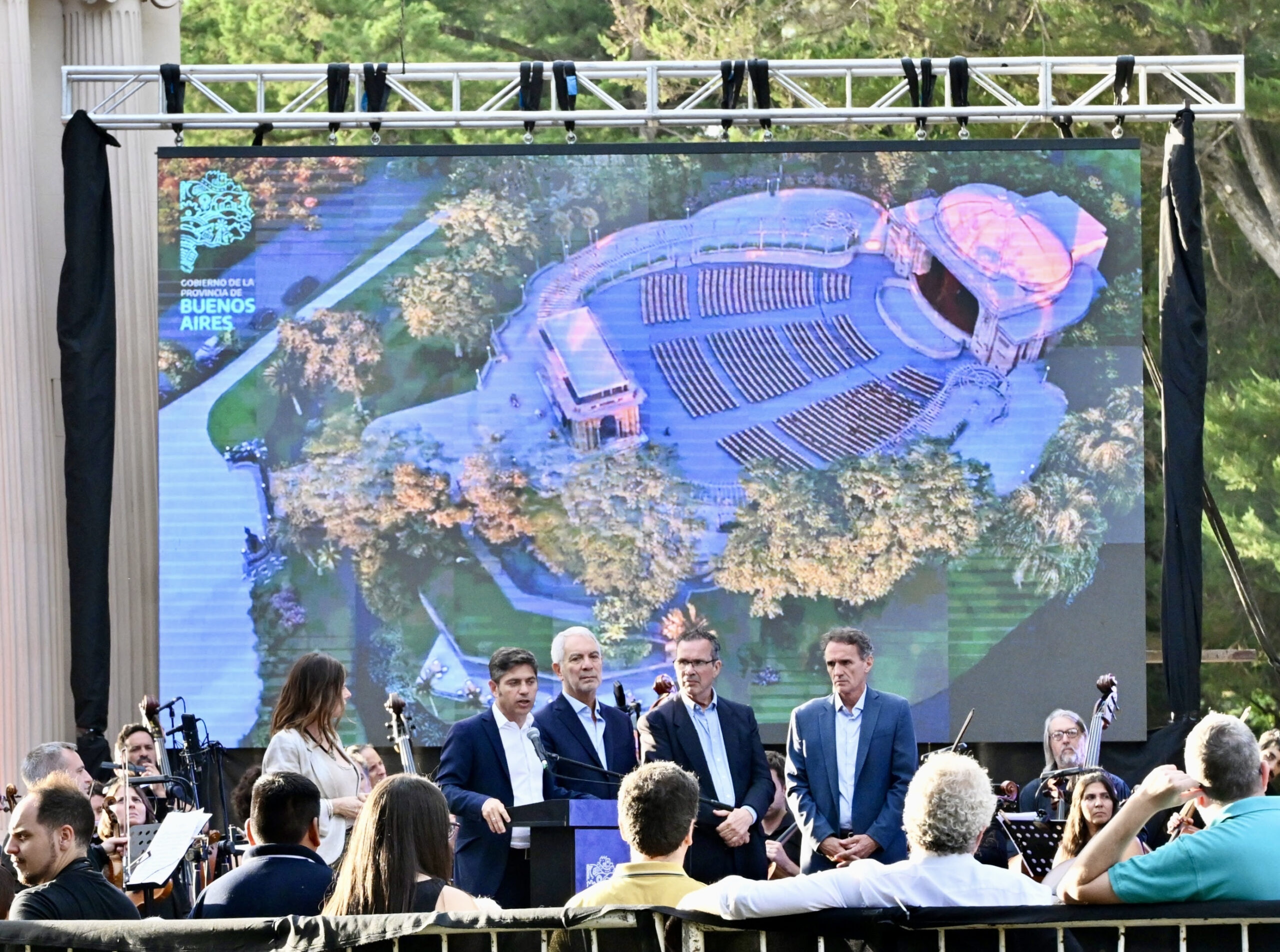 El gobernador de la provincia de Buenos Aires, Axel Kicillof, y el intendente de La Plata, Julio Alak, encabezaron este jueves el inicio de las obras de restauración y renovación integral del Anfiteatro Martín Fierro – Teatro del Lago. Fue junto al ministro de Infraestructura y Servicios Públicos, Gabriel Katopodis; la presidenta del Instituto Cultural, Florencia Saintout; y el director ejecutivo y artístico del anfiteatro, Tristán Bauer.