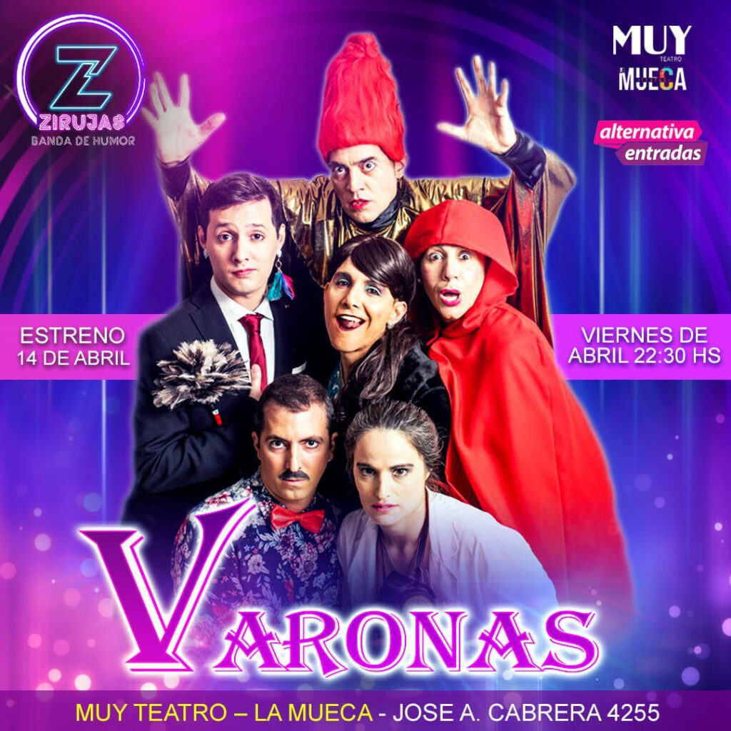 El próximo viernes 14 de abril a las 22.30, en el Teatro La Mueca (José A. Cabrera 4255, CABA) se presentará “Varonas”, nuevo espectáculo de la Banda de Humor “Zirujas”.